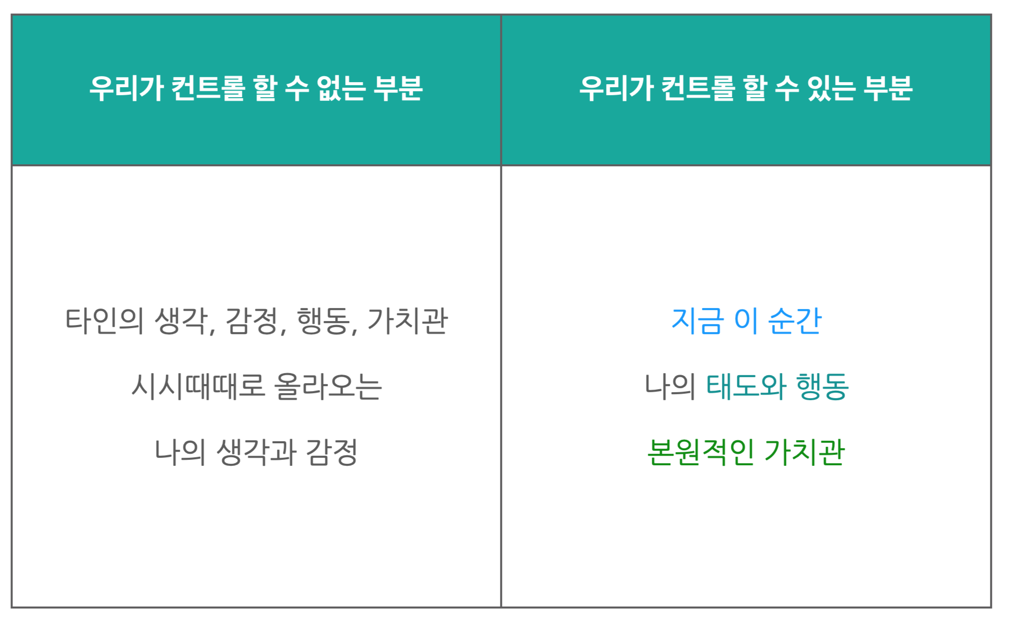 그리고 이윽고 드는 생각이 과연 타인을 바꿀 수 있을까? 란 물음이었습니다. 내담자 분들의 주요 이슈를 보면 “자식이 뜻대로 안 되고, 가족이 뜻대로 안 되고, 함께 일하는 사람들이 뜻대로 안 되고, 내 자신이 뜻대로 안 되고…”